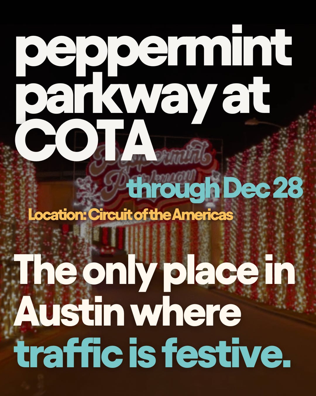 Imagine holiday lights, race-track energy, and traffic that somehow feels cute instead of stressful. This is the only time of year Austin drivers behave on purpose.